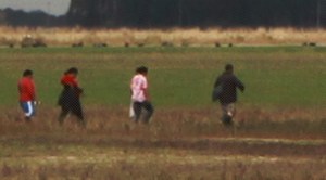 (no caminho, lentamente)